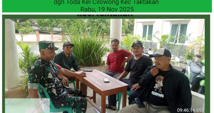 Banten, - Babinsa Koramil 0602-04/Taktakan Kodim 0602/Serang Serma Suyanto, melaksanakan kegiatan Komunikasi Sosial (Komsos) bersama Tokoh Pemuda dalam rangka silaturahmi membahas Kamtibmas, bertempat di Kelurahan Cilowong Kecamatan Taktakan, Kota Serang, Provinsi Banten, Rabu (19/11/2025).