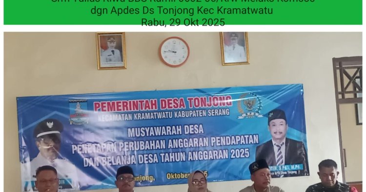 Musdes ini, berfokus pada agenda Penetapan Perubahan Anggaran Pendapatan dan Belanja Desa, bertempat di Aula Kantor Desa Tonjong, Kecamatan Kramatwatu, Kabupaten Serang, Provinsi Banten, Rabu (29/10/2025).