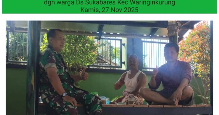 Banten, - Babinsa Koramil 0602-07/Waringinkurung Kodim 0602/Serang Serka Suratman, melaksanakan kegiatan Komunikasi Sosial (Komsos) bersama warga membahas tentang kebersihan lingkungan, bertempat di Desa Sukabares, Kecamatan Waringinkurung, Kabupaten Serang, Provinsi Banten, Kamis (27/11/2025).