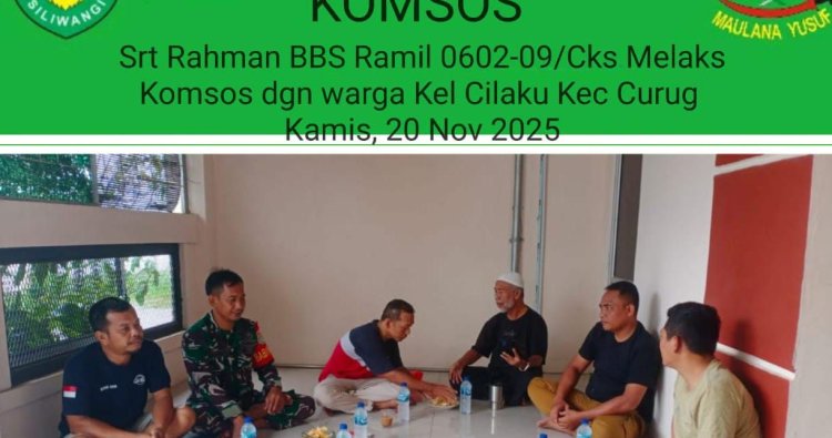 Babinsa Koramil 0602-09/Cikeusal, Sertu Rahmat, melaksanakan kegiatan Komunikasi Sosial (Komsos) bersama masyarakat, bertempat di Kelurahan Cilaku, Kecamatan Curug, Kota Serang, Provinsi Banten, Kamis (20/11/2025).