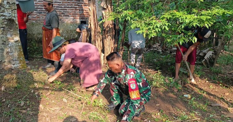 Wujudkan Lingkungan Asri, Babinsa Koramil 0602-06/Kramatwatu Kodim 0602/Serang dan Warga Gelar Karya Bakti