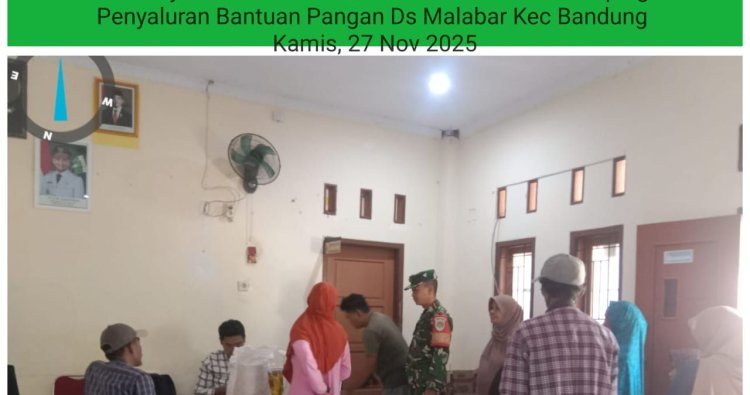 Banten, - Babinsa Koramil 0602-20/Pamarayan Kodim 0602/Serang Sertu Emay, melaksanakan kegiatan pendampingan dan pengawasan penyaluran bantuan pangan dalam bentuk beras dan gula, bertempat di Aula Kantor Desa Malabar, Kecamatan Bandung, Kabupaten Serang, Provinsi Banten, Kamis (27/11/2025).