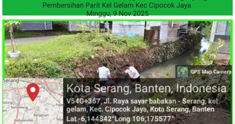 Sertu Iman S, Babinsa Koramil 0602-05/Cipocok Jaya Kodim 0602/Serang, memimpin kegiatan gotong royong pembersihan parit bersama puluhan warga, bertempat di Kelurahan Gelam Kecamatan Cipocok Jaya, Kota Serang, Provinsi Banten, Minggu (09/11/2025).