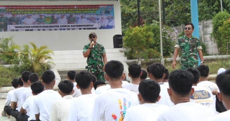Saat menerima pembinaan Pendidikan Karakter Bangsa. Kegiatan yang dihelat selama tiga hari ini, tak lain adalah inisiatif dari Koramil 0602-07/Waringinkurung Kodim 0602/Serang, melalui Komandan Koramil, Letnan Satu (Lettu) Inf Laode Adi Nurjaman, sebagai garda terdepan bersama SMK Negeri 1 Waringinkurung.