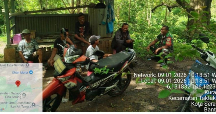 Babinsa, – Babinsa Koramil 0602-04/Taktakan Kodim 0602/Serang, Sertu Sentot, melaksanakan kegiatan Komunikasi Sosial (Komsos) sekaligus monitoring wilayah, bertempat di Kelurahan Kuranji, Kecamatan Taktakan, Kota Serang, Provinsi Banten, Jumat (09/01/2026).