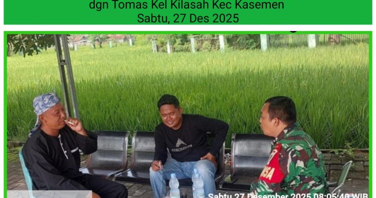 Banten, – Dalam rangka memelihara stabilitas keamanan wilayah binaan, Babinsa Koramil 0602-02/Kasemen Kodim 0602/Serang, Serda Retno, melaksanakan kegiatan Komunikasi Sosial (Komsos) bersama jajaran Tokoh Masyarakat di Kelurahan Kilasah, Kecamatan Kasemen, Kota Serang, Provinsi Banten, Sabtu (27/12/2025).