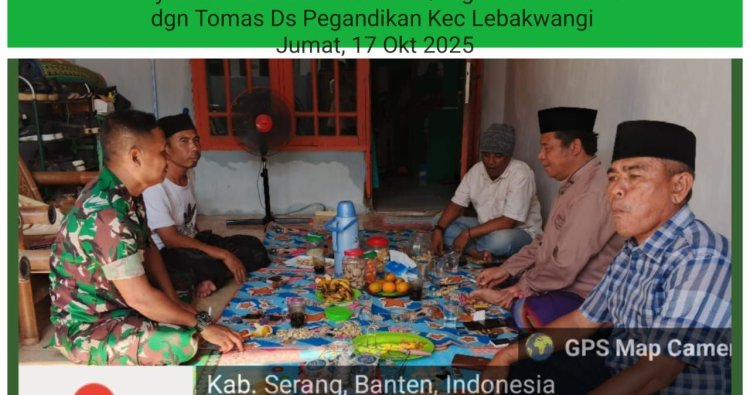 Banten – Dalam rangka menjaga stabilitas keamanan dan ketertiban di wilayah binaan, Bintara Pembina Desa (Babinsa) Koramil 0602-10/Pontang Kodim 0602/Serang, Sertu Syahroni, melaksanakan kegiatan Komunikasi Sosial (Komsos) bersama tokoh masyarakat setempat.